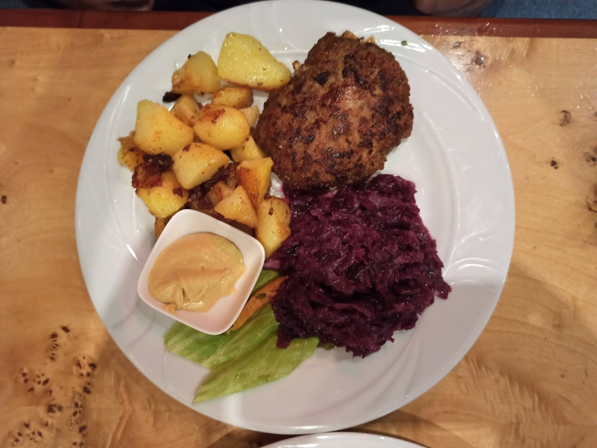 I've been in Germany for about a week now and this is the best meal I've had. If you're looking for traditional German, these guys get everything right. The signage is nicely done using traditional blackletter correctly. They even played german music instead of American 80s radio hits which is all we've heard here. I had the Bauernteller with Blutwurst that tasted like a warm fire in the autumn. It was the first time I'd had it but I can see why it's a favorite. Looking forward to eating there again tomorrow before I leave town.